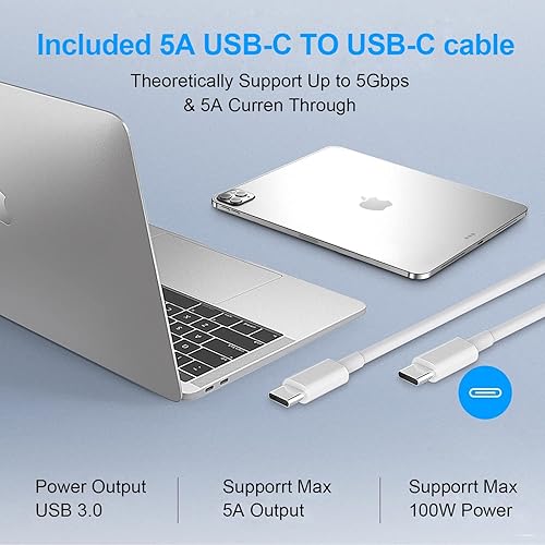 100W USB-C Power Adapter Charger Input:100-240V~1.5A 50-60Hz, output: 20V-5A 15V-3A 9V-3A 5.2V-3A Max 100W;Works with USB C 29W, 30W, 61W, 67W, 87W, 96W PD model. Specification: Input:100-240V~1.5A 50-60Hz output: 20V-5A 15V-3A 9V-3A 5.2V-3A Max 100W Cable length:6 ft. (Approximately equal to 1.8 meters) Works with USB C: 29W, 30W, 61W, 67W, 87W, 96W PD model. MacBook models: MacBook Air M3 chip, 2023 model MacBook Air M2 chip, 2022 model MacBook Air M1 chip, 2020 model(A2337 M1) MacBook Air Retina Display, 13, 2020 MacBook Air Retina Display, 13, 2018-2019 (A2179/ A1932) MacBook Pro 13, M3, 2023 MacBook Pro 13, M2, 2022 MacBook Pro 13, M1, 2020(A2251/ A2289/ A2338) MacBook Pro 13-inch, 2020 MacBook Pro 13-inch, 2016-2019 (A1706/ A1707/ A1708/ A1718/ A1989/ A2159) MacBook Pro 14, 2021(A2442) MacBook Pro 16, 2019(A2166) MacBook Pro 15-inch, 2016-2019 (A1706/ A1707/ A1708/ A1719) MacBook Retina display, 12-inch, early 2015-2017 models (A1534/ A1540/ A1646)