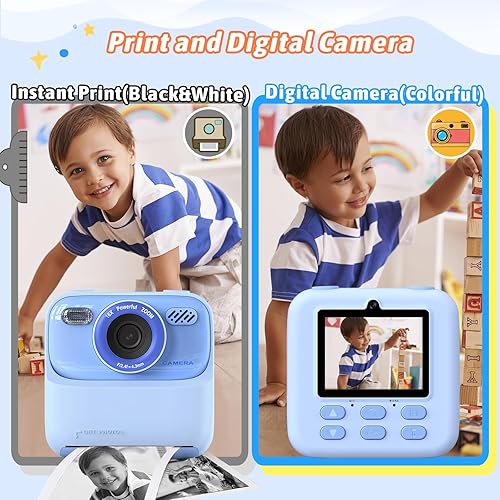 Upgrade Kids Camera Instant Print for Boys and Girls, 1080P HD Dual-Lens Selfie Digital Camera with Print Paper & 32G Card, Christmas Birthday Gifts Toys for Toddler and Teenagers Age 3-16 Years Old