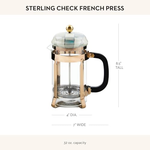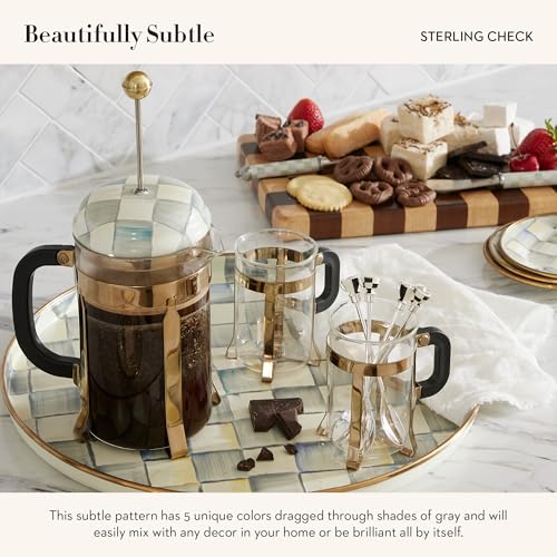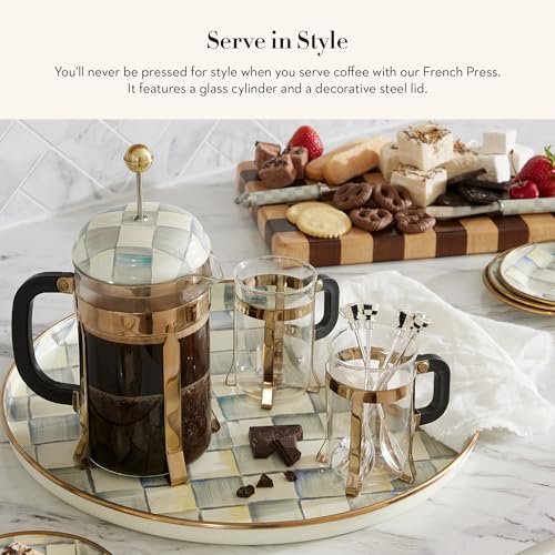 MACKENZIE-CHILDS Coffee French Press, Glass French-Press Coffee Maker, (32)-Ounce Capacity, Grey-and-White Sterling Check