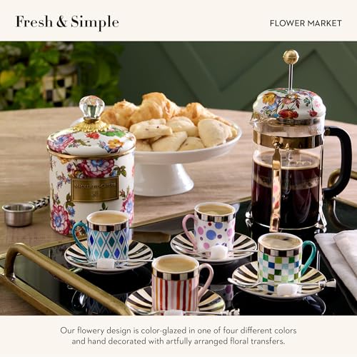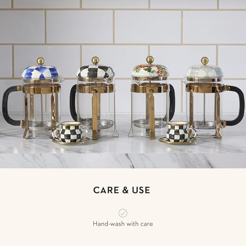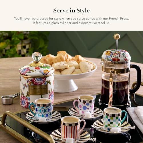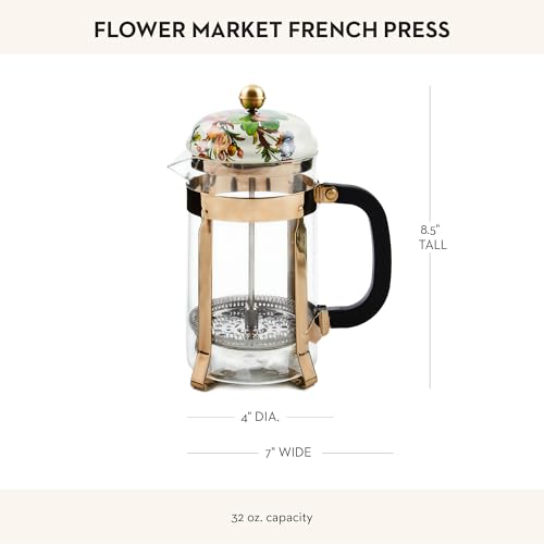 MACKENZIE-CHILDS Coffee French Press, Glass French-Press Coffee Maker, (32)-Ounce Capacity, White Flower Market