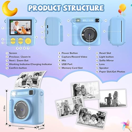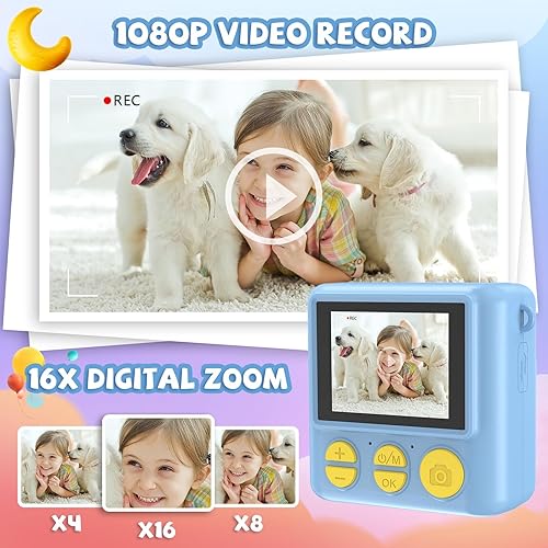 Instant Print Kids Camera - 1080P Selfie Digital Camera, Portable Travel Toy for Boys & Girls Age 3-12, Christmas Birthday Gifts (Blue)
