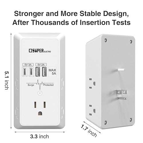 Outlet Extender, USB Wall Charger Surge Protector,5 Outlet Extender with 4 USB Charging Ports (5V 5A),3-Sided 1200J Power Strip Multi Plug Adapter for Home Travel,ETL Listed