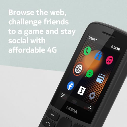 Nokia 215 4G brings you all the perks that come with 4G, like clearer call quality, social media and multiplayer gaming. Enjoy long-lasting battery life, plus type and navigate with precision thanks to the high-performance keymat and dedicated function keys. Take in the premium design features – including a curved back for comfort, easy-grip edge and glossy hard-coated colors for a high-end finish. Plus, give your downtime an upgrade with essentials like Facebook, Snake, try-and-buy games and a built-in camera.