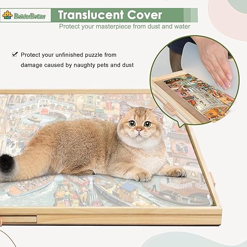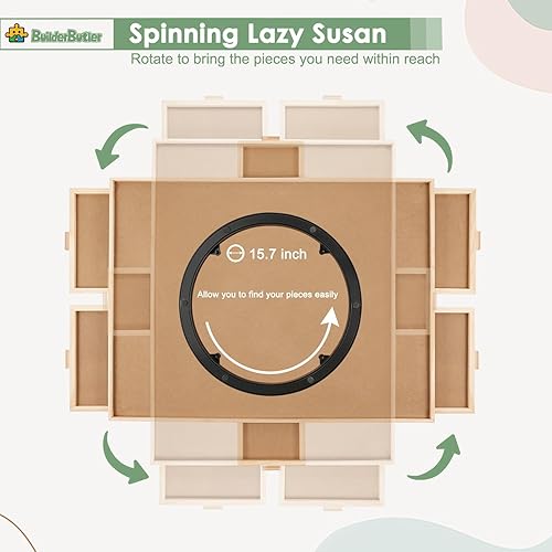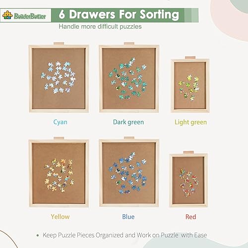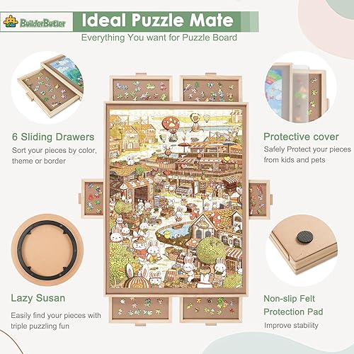 BuilderButler 2000 Pieces Rotating Puzzle Table with 6 Drawers and Cover,29.7"x41.3"Portable Lazy Susan Spinning Wooden Jigsaw Puzzle Table for Adults