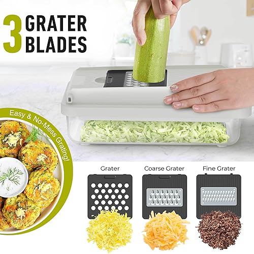 Mueller Vegetable Chopper 9 Blade, Mandoline Slicer, Veggie Chopper, Cheese Grater, Onion Chopper Vegetable Cutter, Dicer, Food Chopper with Container, Kitchen Gadgets & Essentials, White Sand/Grey